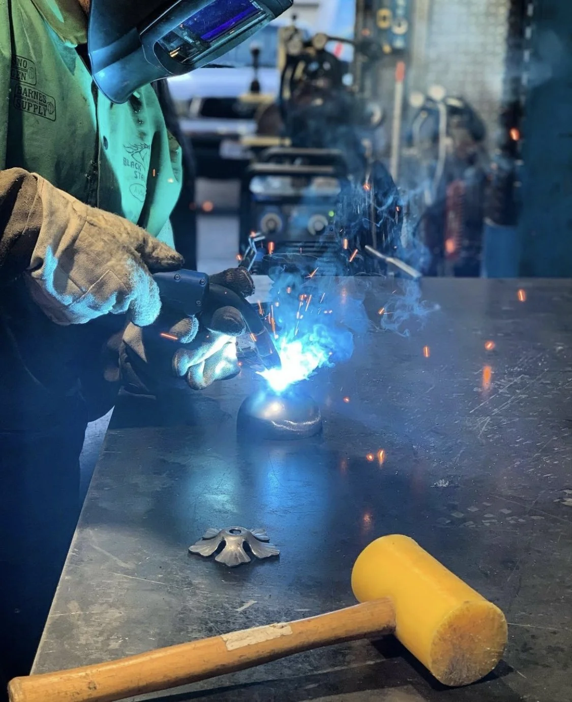 At 27 and while living in Modesto California, Nevada started creating works of art out of metal. Each one of his pieces begins with a specific vision that is physically manipulated into a chosen metal. Working with a wide range of tools and equipment, Silva uses his extensive welding experience to create inspired productions using metals such as mild steel, stainless steel, aluminum, copper and bronze. Most of Nevada’s pieces are characterized by a unique finish created using an oxyacetylene torch that brings out the metals natural and brilliant colors. A fascinating chemical process also results in a kaleidoscopic array of patinas that truly are one of a kind. His creative display of colors and form are indescribably imaginative in sculptures ranging from freestanding, interior and exterior furnishing, decorative fences and gates, custom doors, railings, light fixtures, and water features. An unlimited number of possibilities in metal!